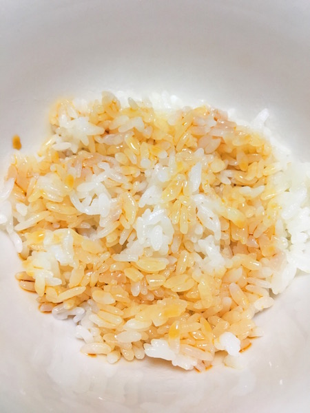 まずはご飯に直接醤油をかけ、満遍なく混ぜます。