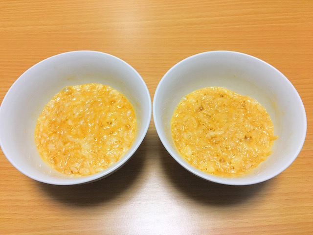 左が普通の卵かけ御飯、右がおしゃべりクッキング風卵かけ御飯。
