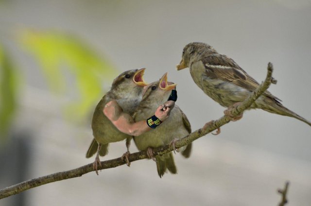海外の掲示板Redditでは、鳥の写真に人間の腕を付けるコラ画像がひそかに流行っているそうです!
