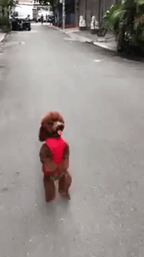 こちらは、ベトナムで暮らしているというトイプードルのボーくん。飼い主さんと散歩中なのですが、ずっと二足歩行で歩いています…!