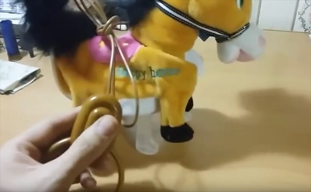 激しく動きながら、甲高い鳴き声をあげる馬のオモチャ。そんなオモチャで遊んでいたら、横で見ていたとある方がとんでもない表情でその様子を見ていました。