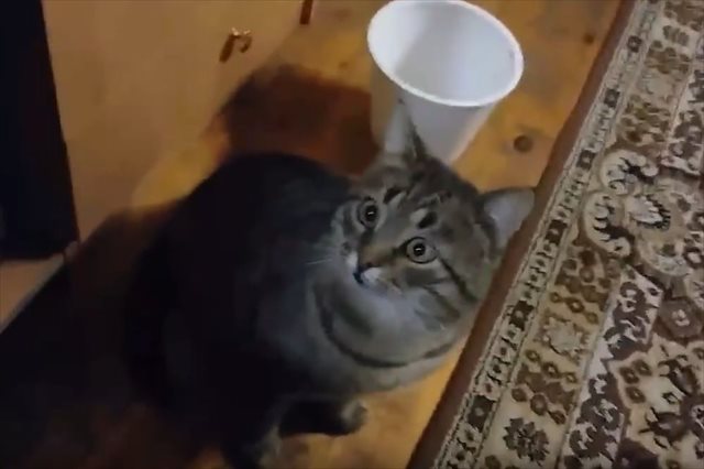 見ていたのはニャンコ。ものすごく驚いた表情をしてフリーズしちゃってます。初めて見たのでしょうが、めちゃめちゃ驚いていますよね…。