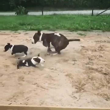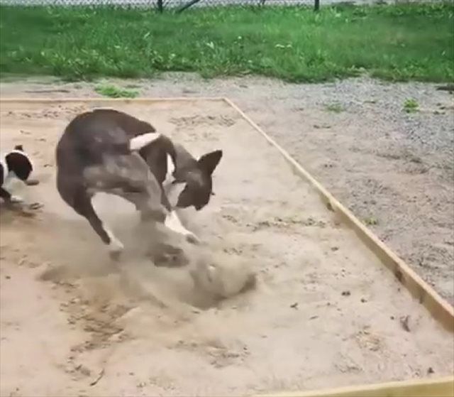 よっぽど砂場が好きなのか… 子犬を弾き飛ばしてしまうほど親犬が大はしゃぎしている映像をご紹介します!