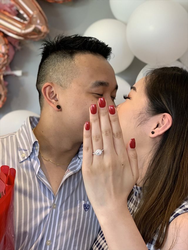 男性と女性がキスをして、女性の指には婚約指輪…。とっても素敵で微笑ましい瞬間です。これは、男性が女性にプロポーズをした際の写真だそうです。幸せな雰囲気が伝わってきますよね。