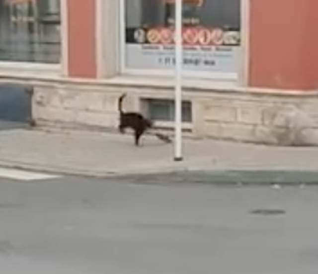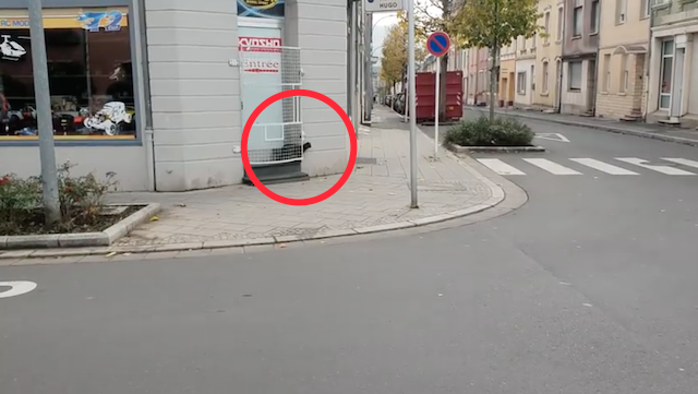 場所はルクセンブルクのエシュ・シュール・アルゼット市。建物の扉から何かを見つめる一匹のネコがいます。