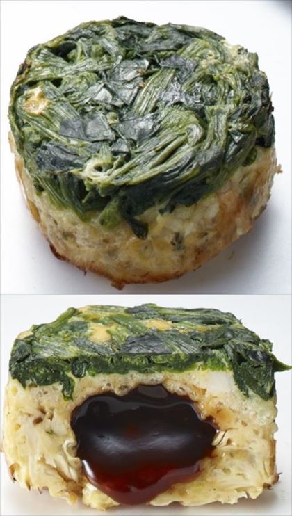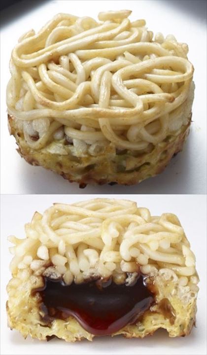 かつおと昆布のだしがきいた生地の中から、トロ~っと溢れ出すソース。