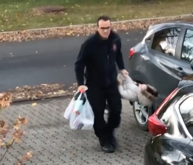 車から荷物を取り出したパパも呆れ顔で彼女に近づきます。