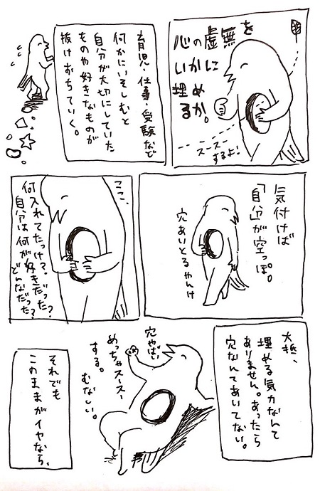 育児だけでなく、仕事や介護のために他のものをそぎ落として、気がついたら自分が空っぽになっていたという人もいるようです。