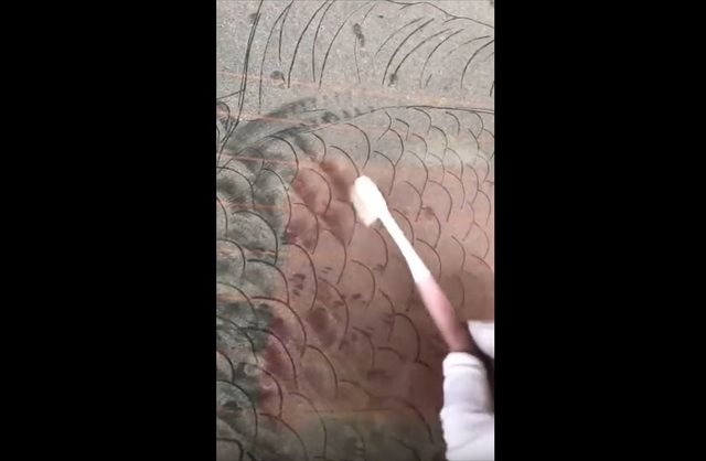 本当に泳いでいるかのようなリアルな出来映えですよね。こちらの鯉を描いたのは、中国のアーティスト。場所は中国のとある場所にある駐車場です。