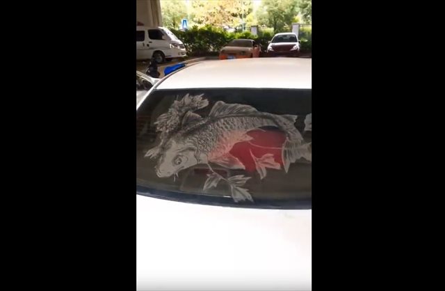 ほこりが積もった車の窓ガラスに描かれた鯉がリアルすぎる!と話題になっているのでご紹介します!