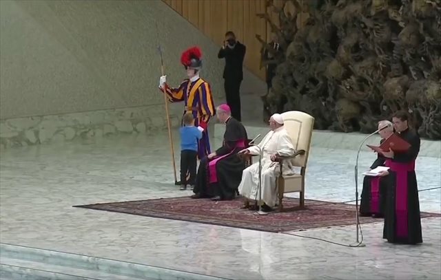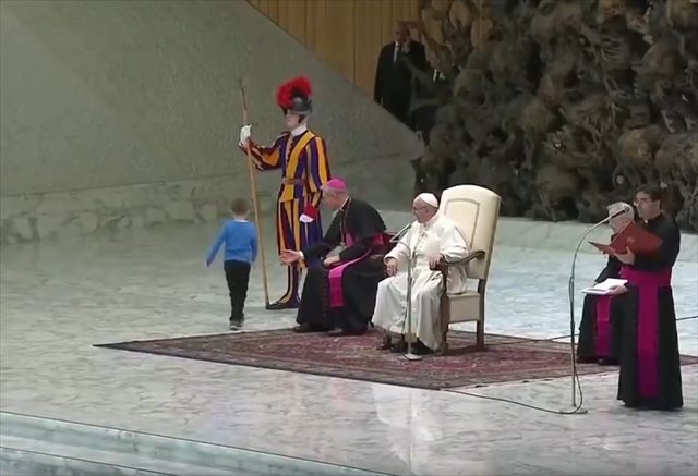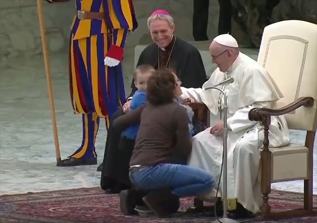 ローマ・カトリック教会のフランシスコ法王による一般謁見の際、アルゼンチン人の男の子が法王と遊ぼうとしたのか、母親の手を逃れ、壇上に飛び出す出来事がありました。