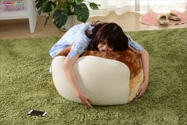 「人をダメにする食パン」ビーズクッションは、ふわもち感が満載のクッション。『カバーを脱がせた状態を発酵後のパン生地っぽく“耳たぶの硬さ”にして』というわがままを完全再現しているとのこと。