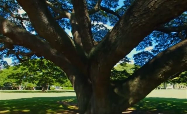日立の樹はモンキーポッドと呼ばれる種類の木で、ホノルルから北西に約5マイル(約8km)の場所にあるモアナルア・ガーデンという公園の真ん中に立っています。同公園に入るためにには入場料がかかり、その入場料が公園全体の保守などに充てられているそうです。