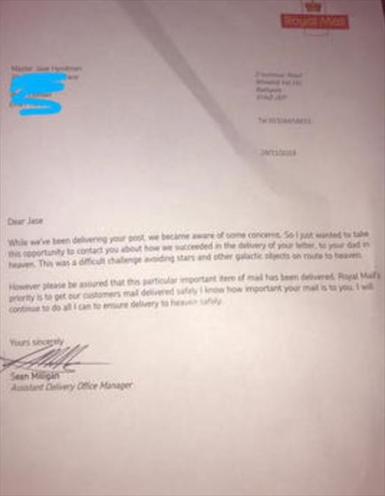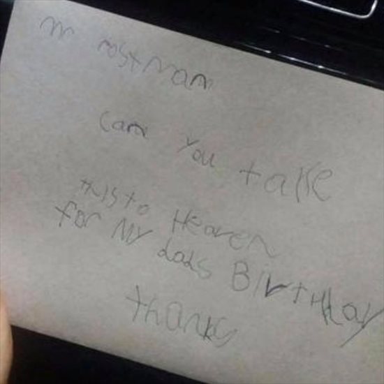 手紙を送ったのは、イギリスに住んでいる7歳のジェイス君。パパは4年前になくなってしまったそうですが、片時もパパのことは忘れていません。パパの誕生日を迎えようという時に、ジェイス君はこんな手紙を投函します。