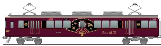 そして今回導入する『京とれいん 雅洛』は、現行の『京とれいん』のイメージを継承しつつ、「ご乗車されたときから京都気分」をコンセプトに、“京都”を五感で感じ取っていただけるデザインに7000系車両を改造。