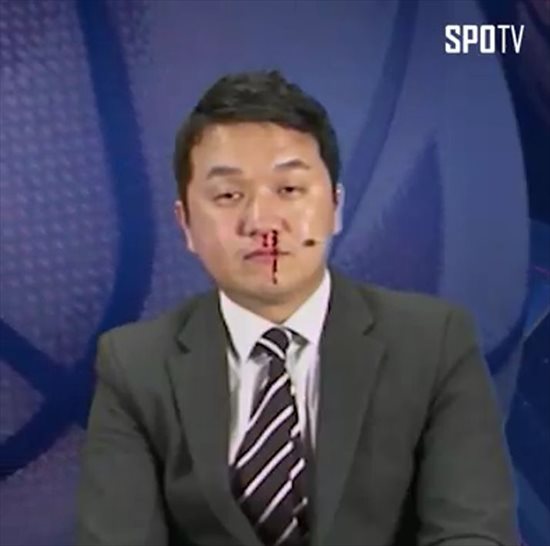 スポーツ番組の生放送中に鼻血がたら~っと流れるも、解説を続けるアナウンサーの様子が投稿され、大きな反響を呼んでいます。