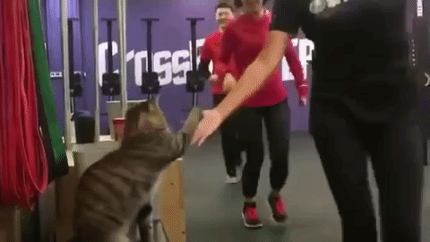 ランナー達をハイタッチで激励するニャンコが、まるでジムのコーチみたいだと話題なっている動画をご紹介します!