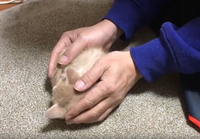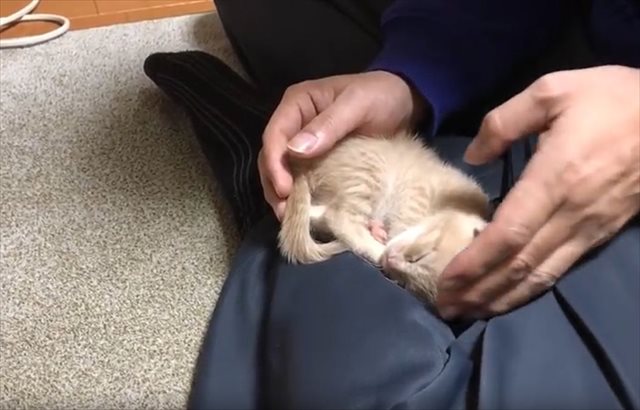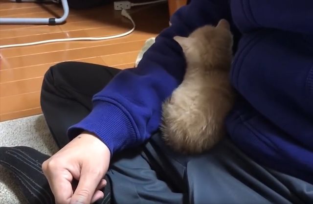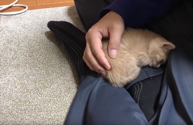 出典:YouTube(何度も膝の上に戻ってくる子猫に癒される It is healed by the kitten of the spoilt child)