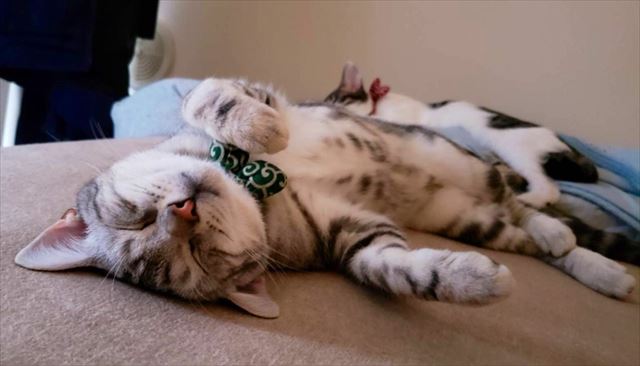 ポーズはライオンキングのシンバと一緒ですが、表情が全然違いますね(笑)