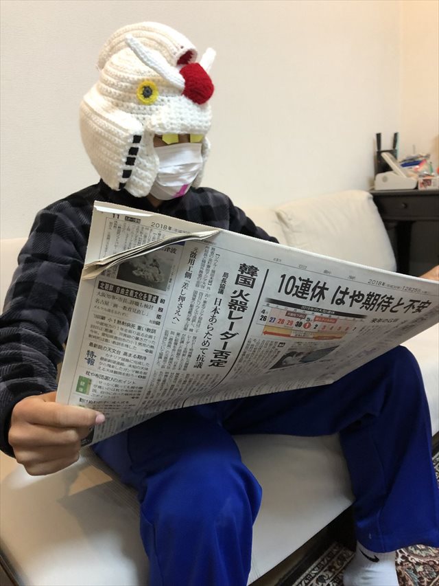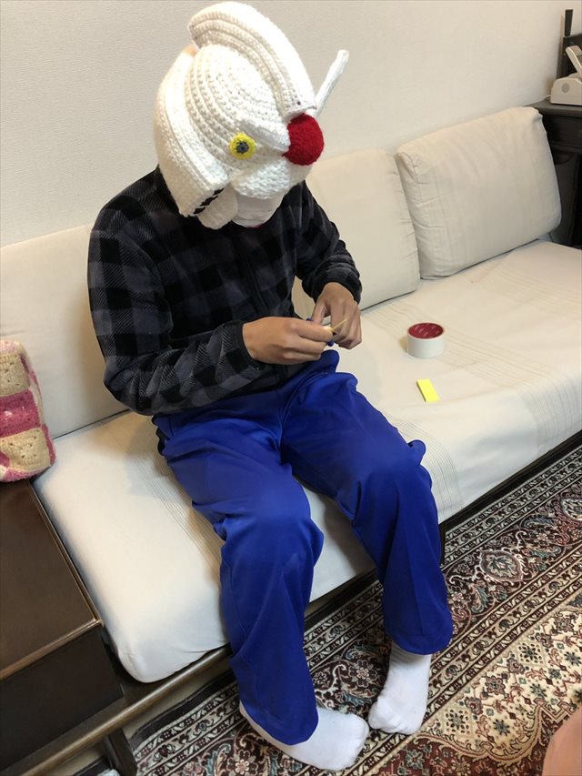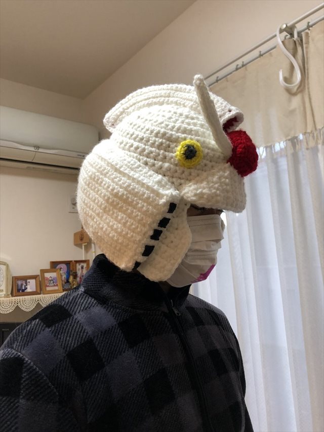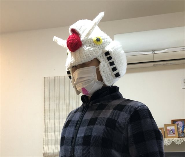 かなり精巧に編まれていて完成度高いです!そして、本当にかぶるだけでガンダムになりきれますね。ん…?もしかして立ったまま眠っていますか!?
