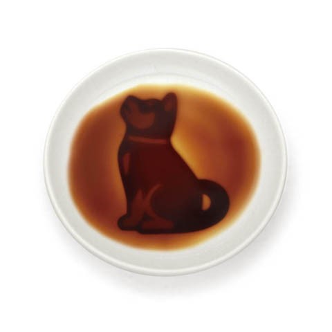 こちらは柴犬。醤油を注ぐと、このように可愛らしい柴犬がくっきりと浮かびます。