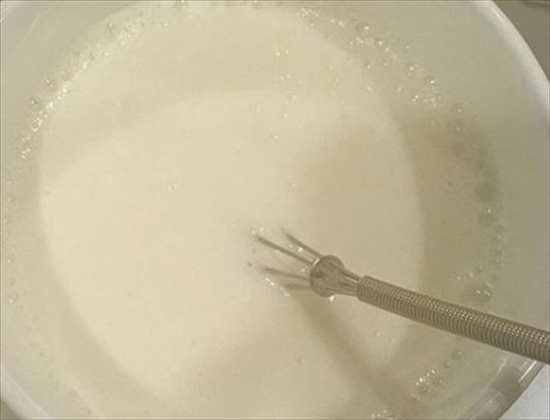 その後、牛乳を入れた鍋で1時間ほど煮て冷ますと… このようにくっついたそうです。
