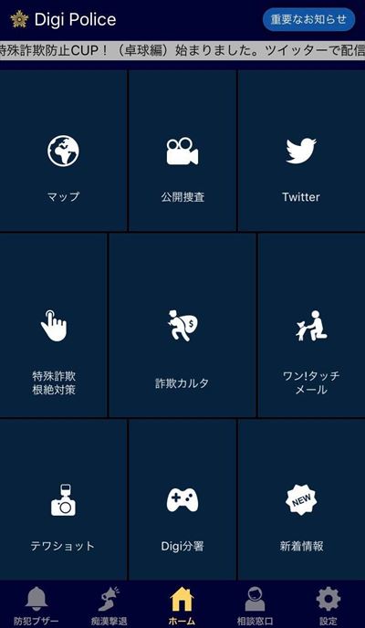 犯罪発生情報、不審者情報、公開捜査情報などが見られるだけでなく、警察署検索もできたり、防犯ブザーを鳴らすことができたりなど多様な機能を兼ね備えているそうです。