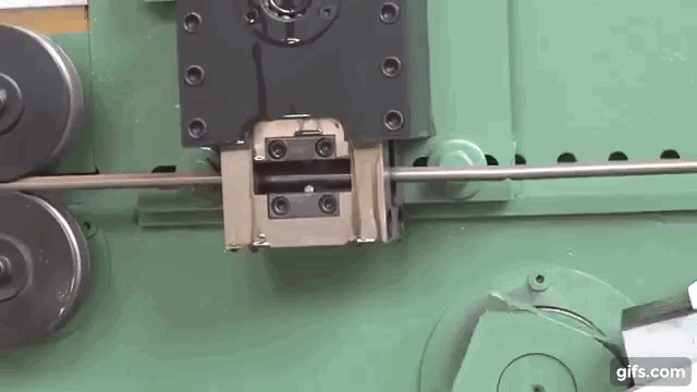 そんな機械にセットされた長い鉄の棒、まずはこれに切れ込みを入れる工程からスタートします。