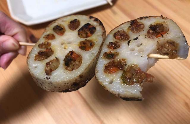 蓮根は一度揚げてから焼いているので、外側はカリッカリで、中はホクホク!適度にシャキシャキ感も残っていて最高です!さらにギュウギュウに詰められたキーマカレーの旨みが最高!スパイシーなので体も温まります。