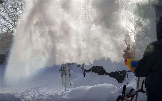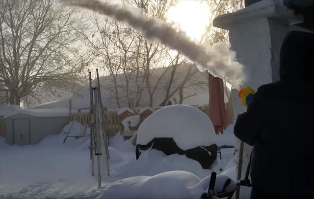 氷点下39度の極寒の中、熱湯の入った水鉄砲を発射した様子を撮影した動画が話題となっています!