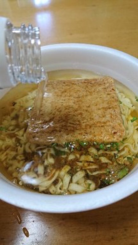 "カップうどん"は、"カップラーメン"と違ってめんが太いので、水で作れないのでは…?