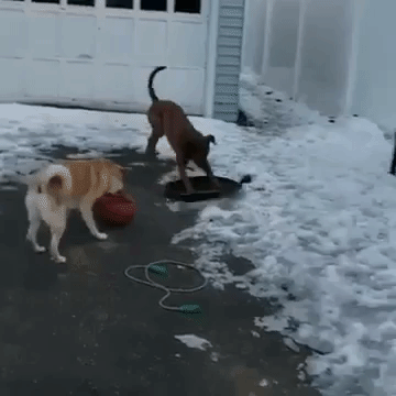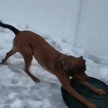 ワンコは円状の何かを加えています。そんなに重いものではなさそうです。