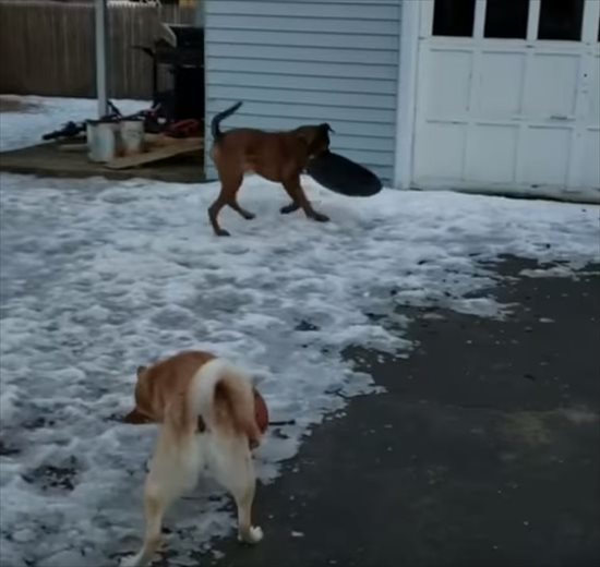 そうはしゃぐ声が聞こえてきそうな、とても楽しそうなワンコの映像。何かを使って雪の上をスイスイと滑っているのですが、一体どんなことをしているのでしょうか。