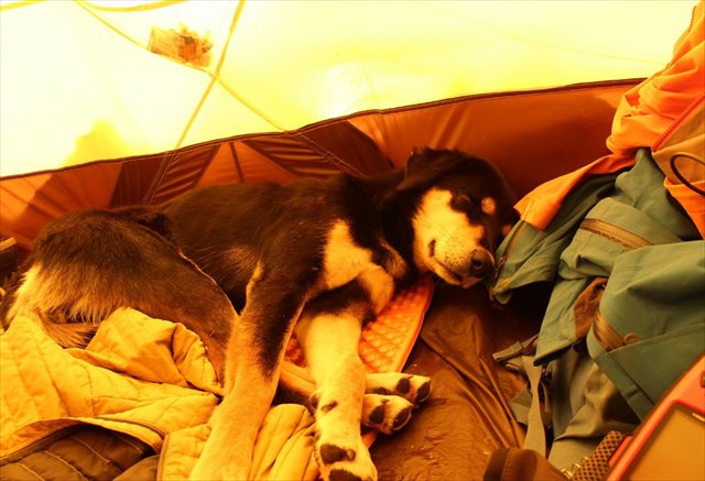 途中、メラは体調を崩してぐったりしていたそうですが、テントの中で休息をとり、登山隊のメンバーらと一緒に食事をして回復したそうです。