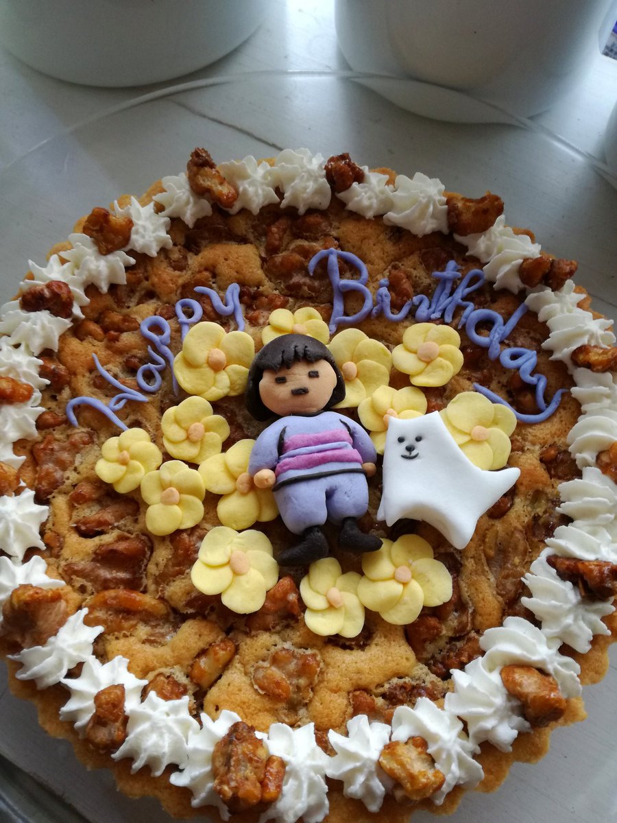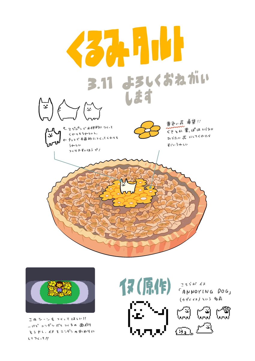 ほうほう、くるみたっぷりのタルトの上に黄色いお花とイヌが乗った可愛いデザインですね。因みにこちらはundertale(アンダーテール)というゲームの世界観をモチーフにしているのだそう。