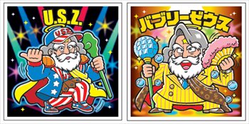 ビックリマン世代の著名人や、ビックリマン公式イラストレータがスーパーゼウスをモチーフに新たな一面を描く新シリーズとのこと。シールはエンボスメタルを使用した全24種類です。