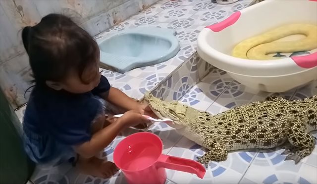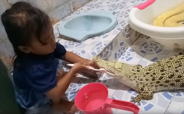 小さな女の子が、ペットのワニの歯をみがいてあげている光景。なんとも微笑ましい様子を撮影した動画をご紹介します!