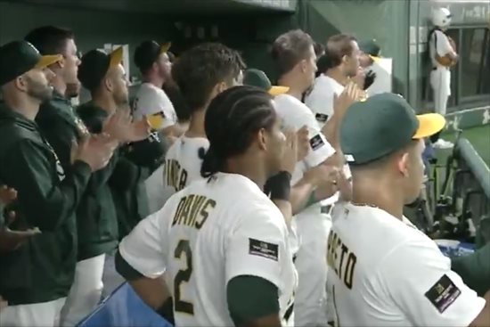 敵のアスレチックスの選手達も全員がスタンディングオベーション。