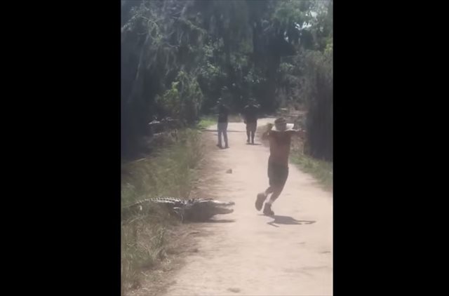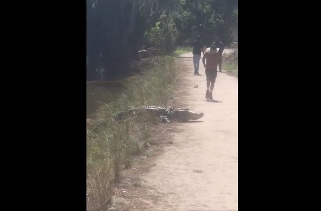 目の前にいる大きなワニに全く気づかないジョギング中の男性。その後、接近していくと予想外の展開に…!その一部始終をとらえた動画をご紹介します。