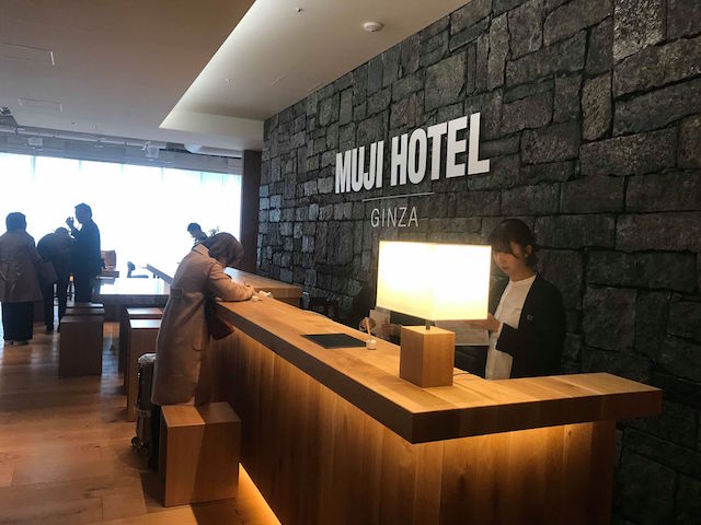 さあ、ついにやってきました!日本初の無印良品のホテル、MUJI HOTEL GINZAのフロントが登場です!