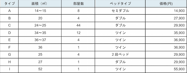 こちらタイプCのお部屋は、MUJI HOTELの中で、もっとも部屋数の多いタイプだそうです。