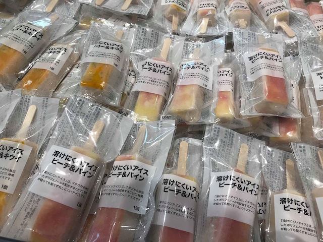 その他にも季節のフルーツや野菜を使ったフレッシュジュースを提供するジューススタンドや、大人気のレトルトカレー(蓮池も大好物)、4月4日から「無印良品 銀座」にて先行発売され、4月27日から無印良品限定60店舗で発売される新商品の溶けにくいアイスなど、様々な食にまつわるものが並んでいました。