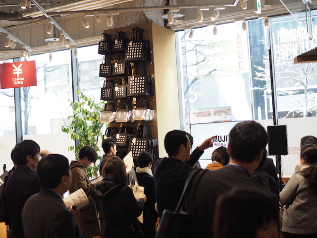 やはり話題沸騰の「無印良品 銀座」、テレビカメラも入り大勢のメディア関係の方がひしめき合っておりました。
