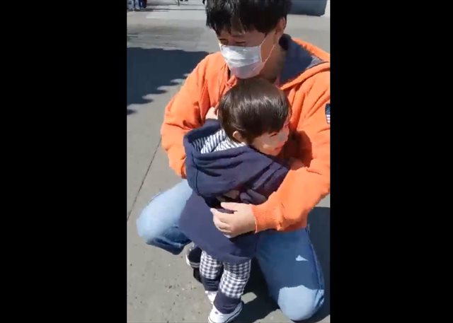 無事にスギちゃんのところに到着!スギちゃんも満面のやさしい笑顔を浮かべて息子を抱きしめます。