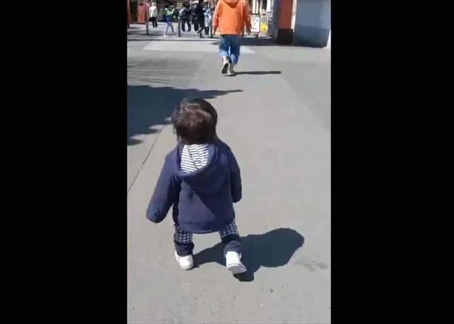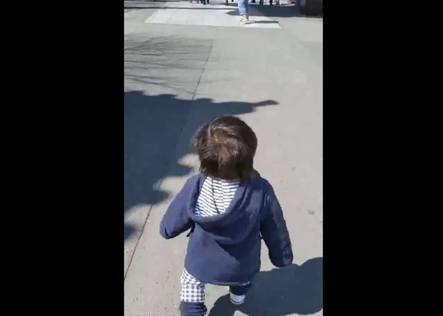 こちらはスギちゃんがいる所へ向かって、よたよたと駆け寄っていく息子。