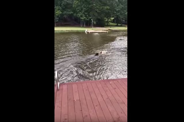 池に落ちた飼い主を助けようと、すかさず池に飛び込んだ2匹の飼い犬。その一部始終を撮影した動画をご紹介します!