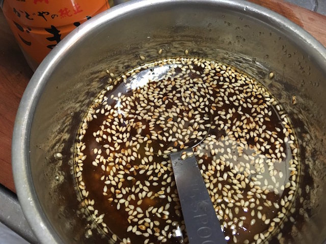 普通のゴマがなかったのですりごまを入れて、よくかき混ぜる。