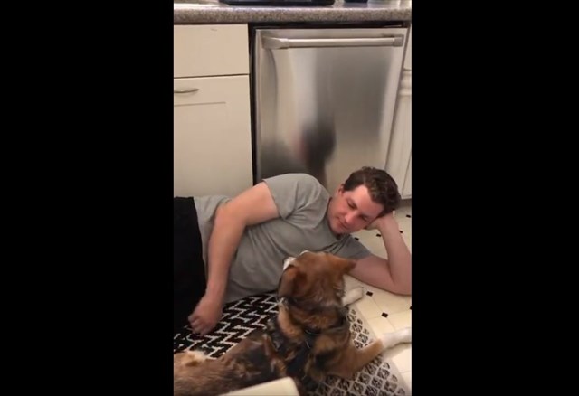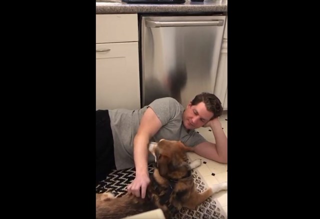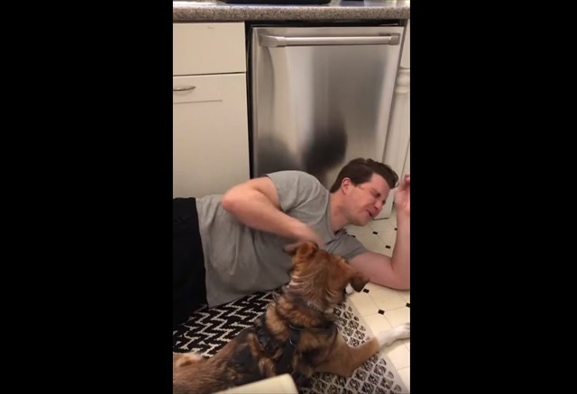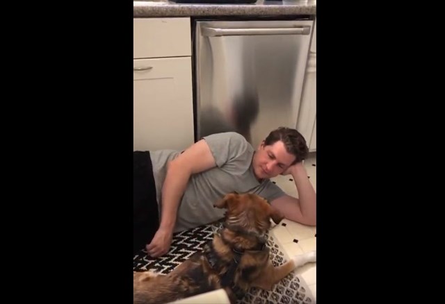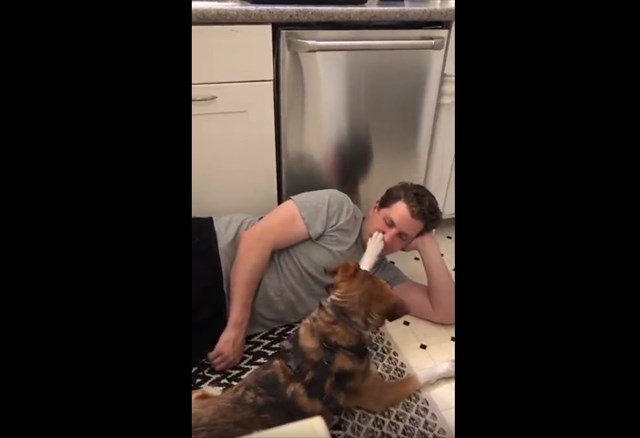 ワンコの強烈なパンチが男性の顔面に炸裂!!