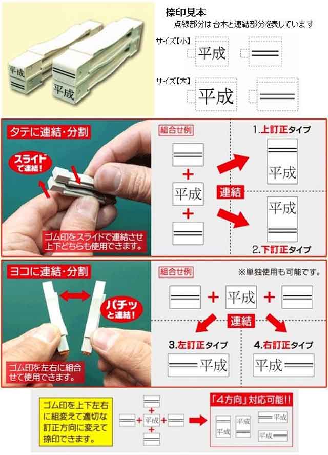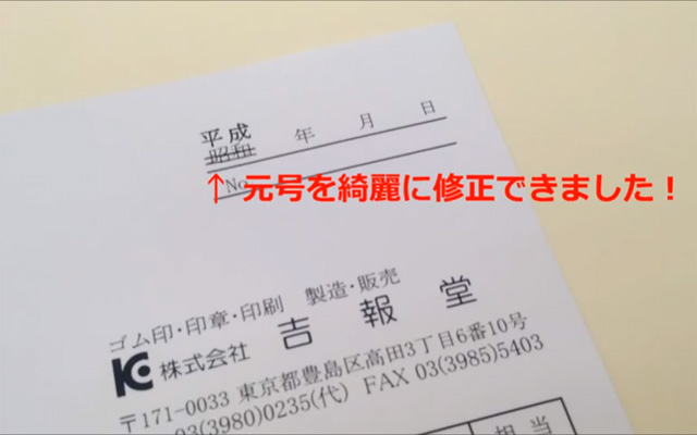 それはたった3つのアクションで、スピーディーに書類が修正できるスグレもの。ゴム印の総合メーカー「吉報堂」が販売するスタンプ、『元号訂正用ジョインティ』です!