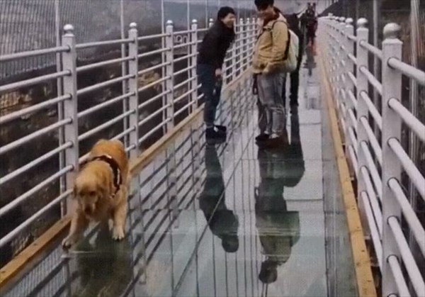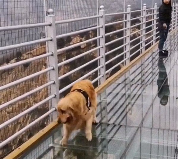 一体どうなってるんだワン!? ガラス張りの橋を渡ろうとするも、怖すぎて予想外の行動を起こすワンコ。その時の様子をとらえた動画をご紹介します!